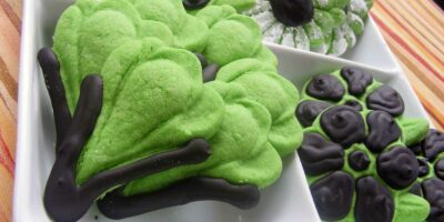 DRIZZLE: In a flat bowl heat the remaining chocolate chips with the 1 tsp vegetable shortening for 1 minute in the microwave. Stir and if needed add a little more shortening and heat for 30 sec – 1 min more. Stir chocolate.